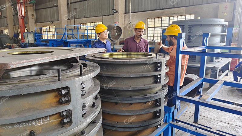 展廳參觀之后,朱經(jīng)理又帶領(lǐng)客戶來(lái)到我們的磨粉機(jī)生產(chǎn)車(chē)間,以磨輥和磨環(huán)為例,向客戶詳細(xì)介紹了超細(xì)磨粉機(jī)的易損件都有哪些,以及易損件的保養(yǎng)維護(hù)方法和使用技巧是什么。